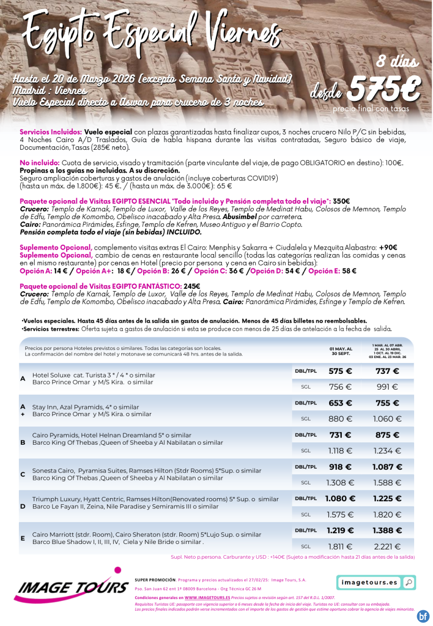 Egipto Especial Viernes hasta marzo 2026, 8 días de viaje con plazas garantizadas desde solo 575 €