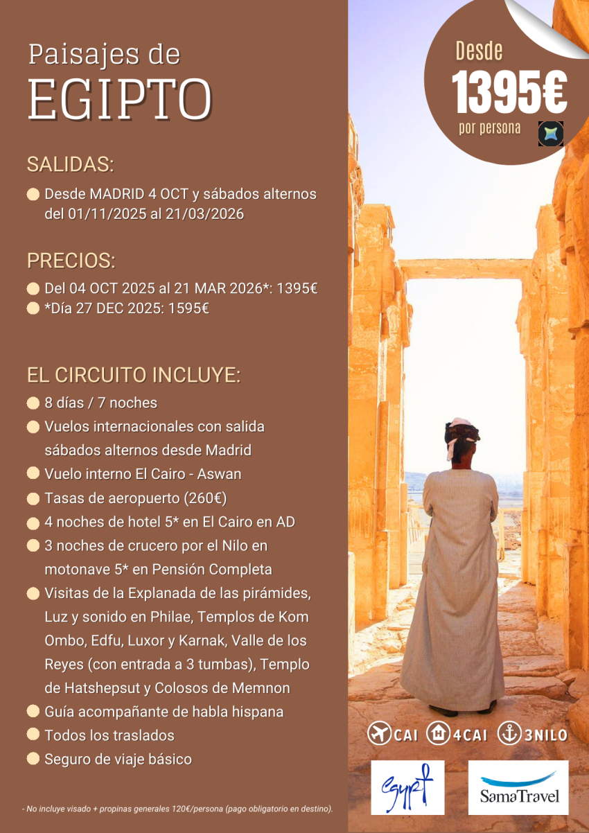 "Paisajes de Egipto": 8 días Cairo +crucero +visitas [Desde MAD a CAI] (01Nov25-21Mar26) **Desde 1.395€**