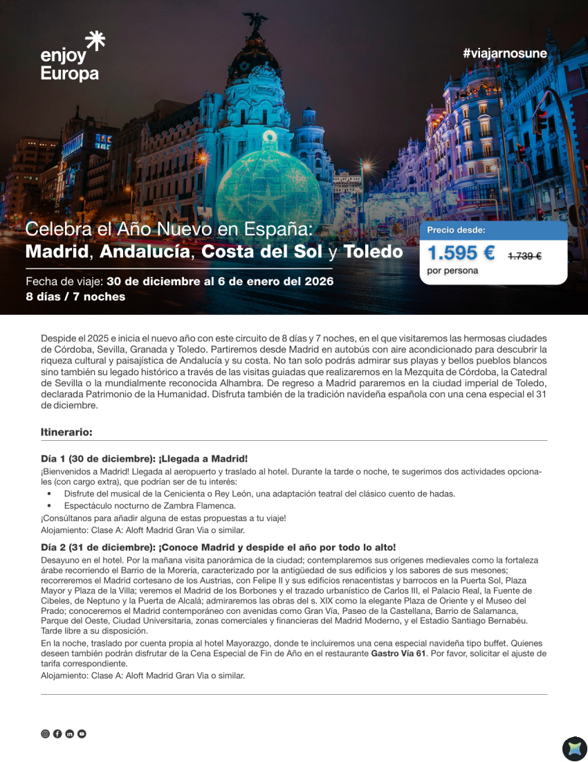 Celebra el Año Nuevo en España: Madrid, Andalucía, Costa del Sol y Toledo